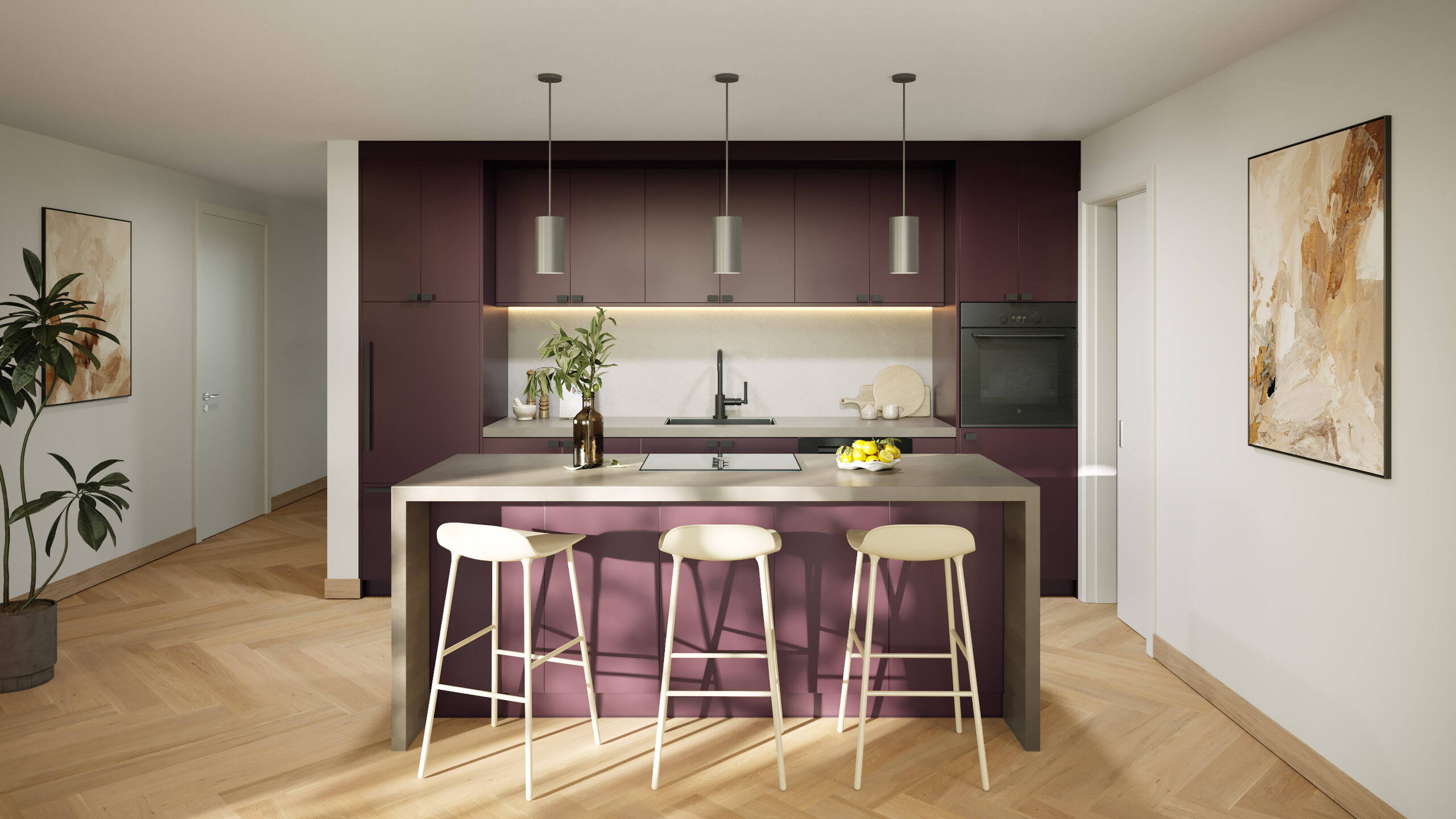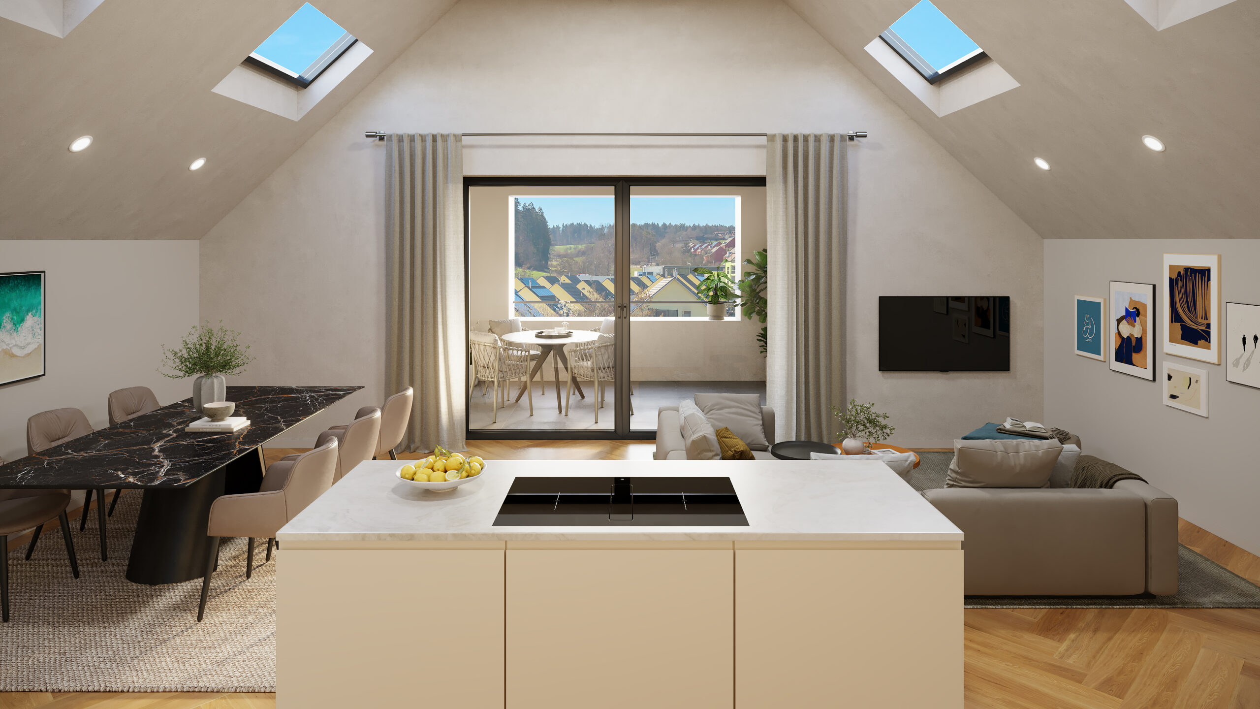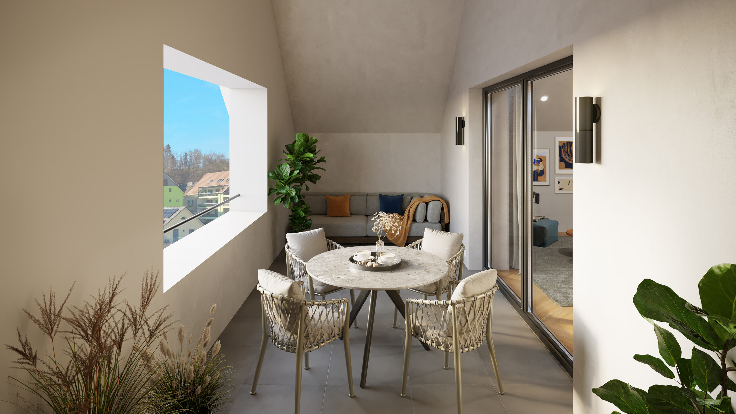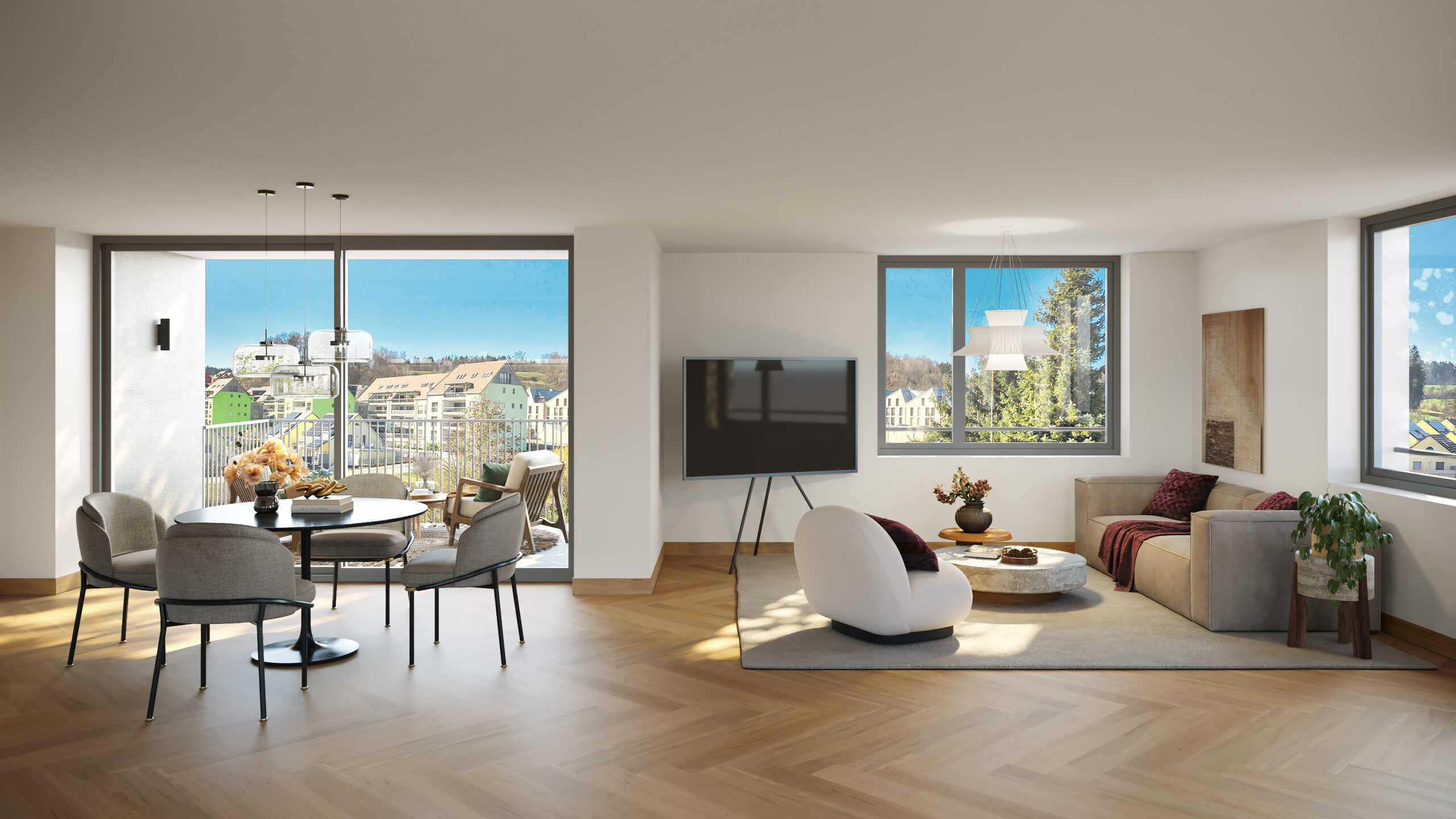 Im Mittelpunkt steht ein Wohnkonzept, das Offenheit, Licht und Funktionalität verbindet. Die Grundrisse schaffen kurze Wege, gut möblierbare Zimmer und ein angenehmes Raumgefühl. Balkone oder Loggien erweitern den Wohnbereich nach aussen und machen das Zuhause auch im Alltag besonders attraktiv.